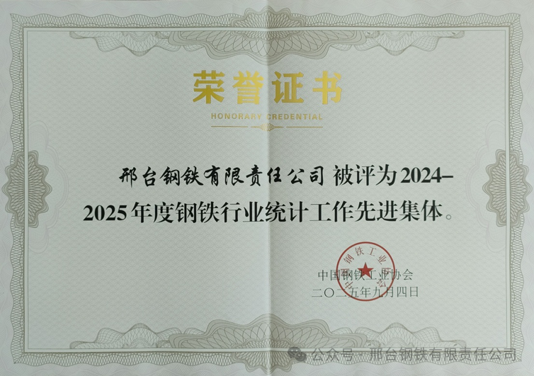 2025年9月10日至12日,由中國鋼鐵工業(yè)協(xié)會主辦的鋼鐵行業(yè)統(tǒng)計(jì)工作會議暨統(tǒng)計(jì)與信息工作委員會換屆會議在河北遷安召開。邢臺鋼鐵有限責(zé)任公司(以下簡稱“邢鋼”)獲評“2024-2025年度鋼鐵行業(yè)統(tǒng)計(jì)工作先進(jìn)集體”,該公司郭興坤同時(shí)榮獲“鋼鐵行業(yè)統(tǒng)計(jì)工作先進(jìn)工作者”稱號。這是邢鋼時(shí)隔七年再次斬獲該榮譽(yù),體現(xiàn)出企業(yè)在數(shù)據(jù)統(tǒng)計(jì)與信息化建設(shè)方面的持續(xù)進(jìn)步與行業(yè)高度認(rèn)可。